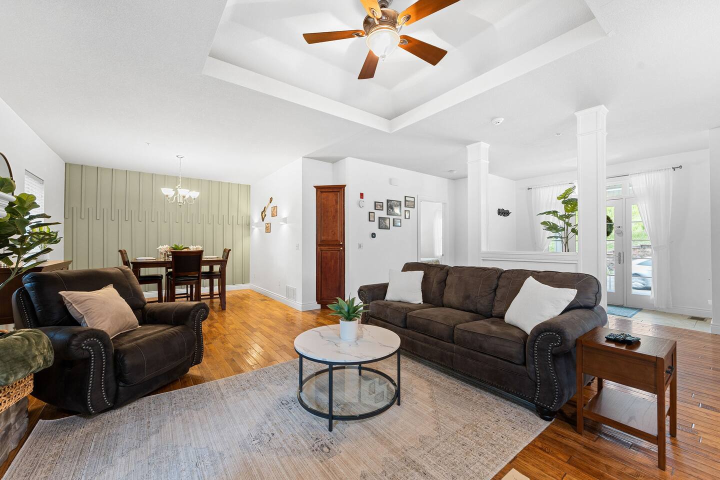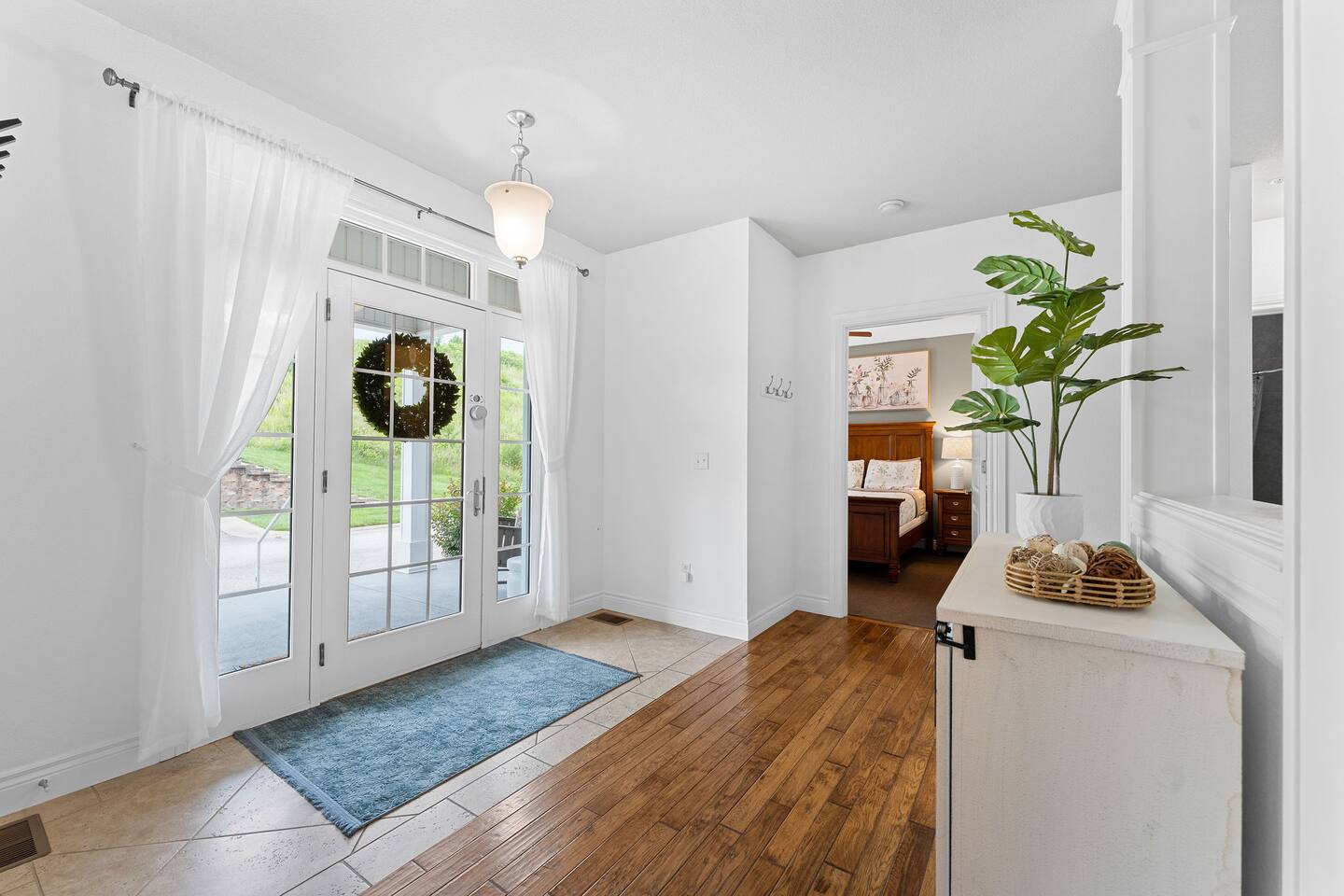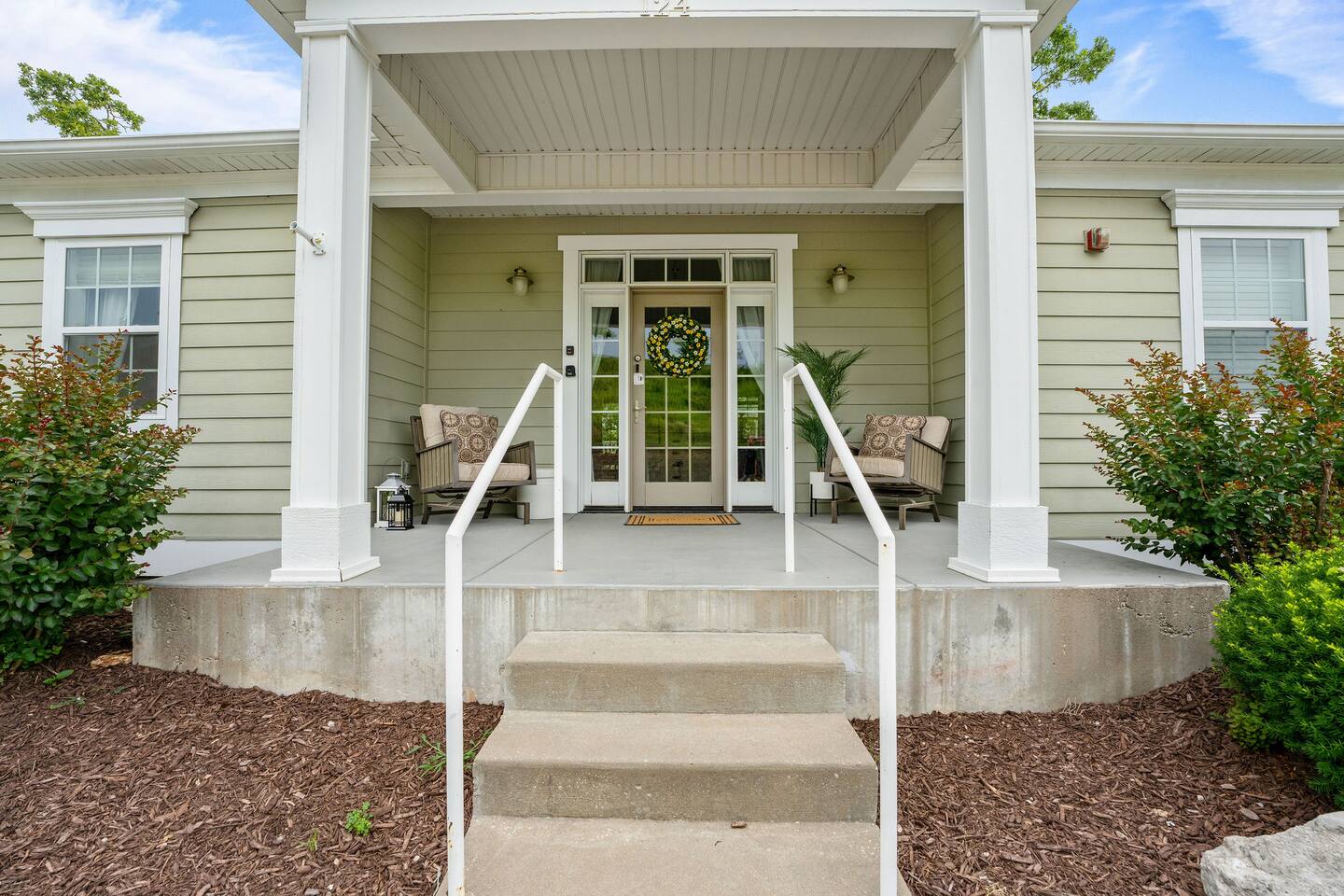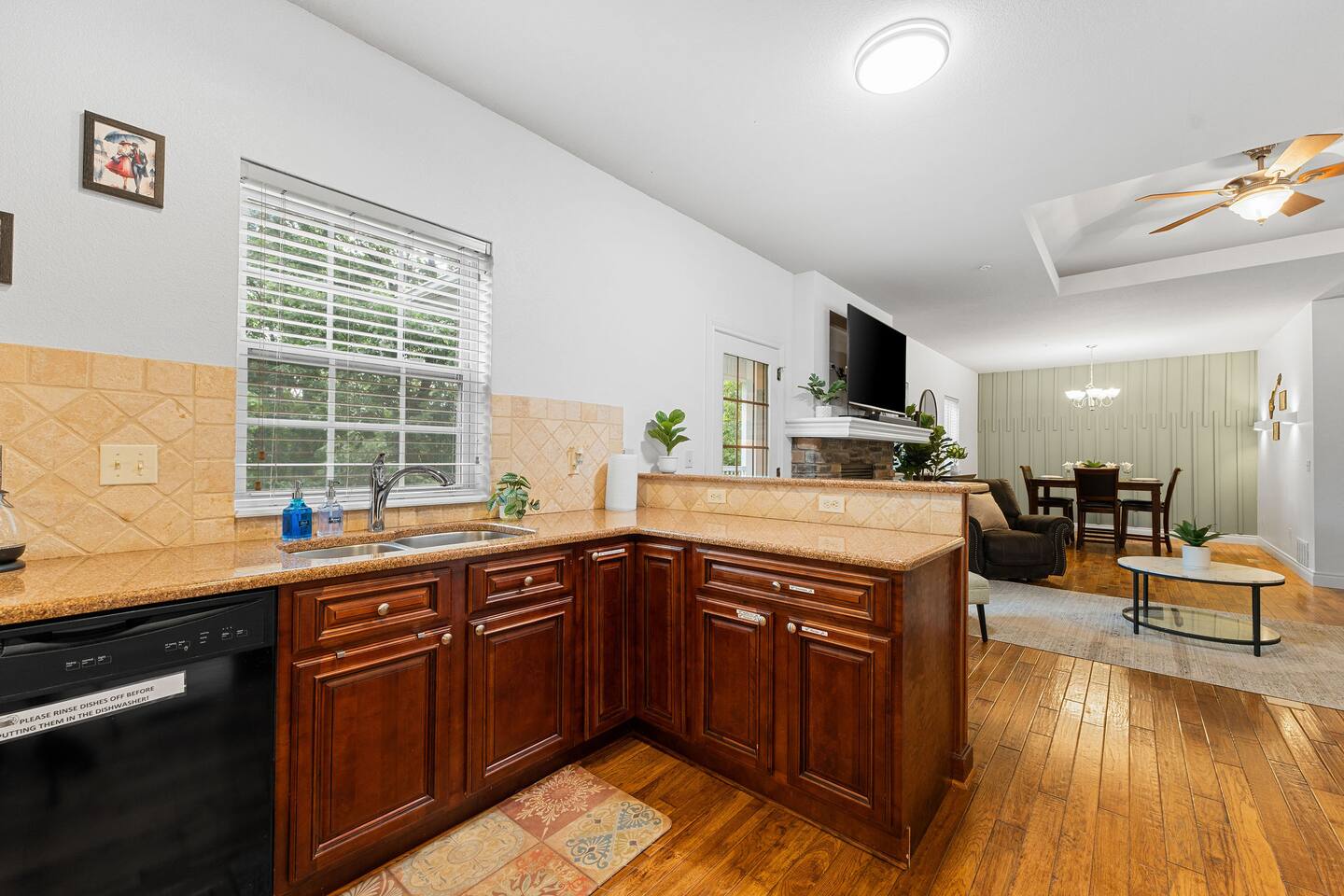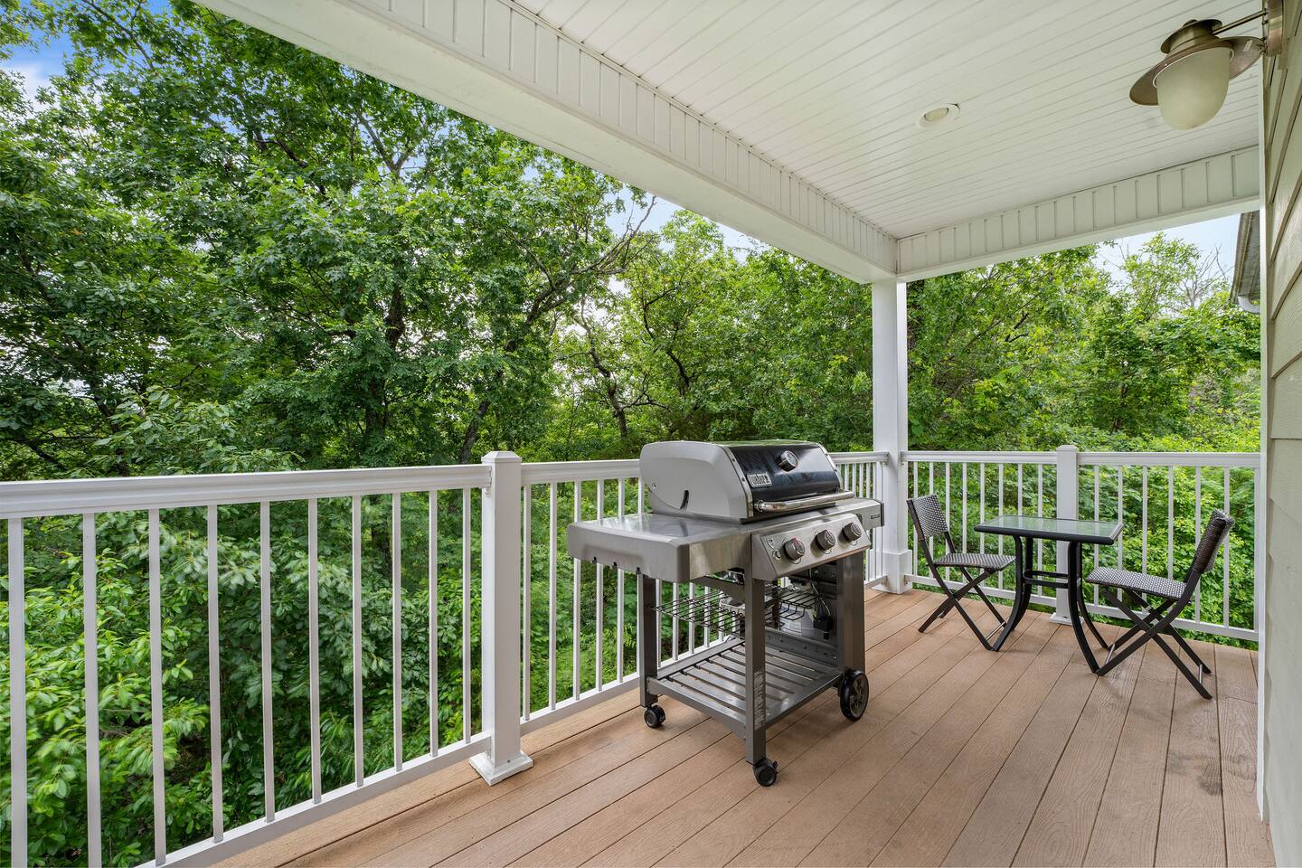 If you are looking for a modern cozy rental villa situated in a peaceful and quiet gold community, Villa Violà is IT ! This modern 2 bedroom, 2 bath which sleeps 8 offers everything you will need for a comfortable stay. We offer a fully equipped kitchen, an outdoor deck with grill, a decorated living room space with a fireplace, fast speed internet and smart tvs to log on to your streaming channels with your personal login. The open floor plan allows for the option of gathering for meals at the dining room or at the breakfast bar. Onsite Amenities: Resort amenities include onsite golf (require additional fees), tennis, outdoor pool, gym and hot tub in club house within walking distance. Avid golfers will appreciate the stimulating Public 18 Hole Course that is Branson Hills Golf Club which has tee times from 7:30pm – 6:30pm daily. It also offers a full restaurant and lounge for your convenience. The pool generally opens Memorial Day and is weather dependent and unheated. Location, Location, Location: Villa Violà is conveniently located at the corner of Branson Hills Parkway and Pinehurst Drive, just off the Branson Hills Parkways Exit on Highway 65. The villa is across the street from Branson Rec-Plex which offers hiking trails, playgrounds and ball parks in addition to fitness and recreation facilities galore. Villa Violà is within 12 minutes of the new Convention Center, Branson Landing shopping center, Tanger Outlets, and the 76 strip which contains dining, theme parks, and live shows. Accessibility in Villa Violà: There are three steps at the front entrance and a walk-in shower. The rest of the villa is a single level. House Rules: - Smoking: NO smoking or vaping inside the villa -Pets: Though we love our animals, we want to ensure that everyone can enjoy the villa without worrying about pet allergies. So unfortunately, NO pets are allowed. - Parties or Events: To be respectful to our neighbors, we don’t allow parties, events or loud noise after 10PM. We strive to provide you with a Trademark Level of service.