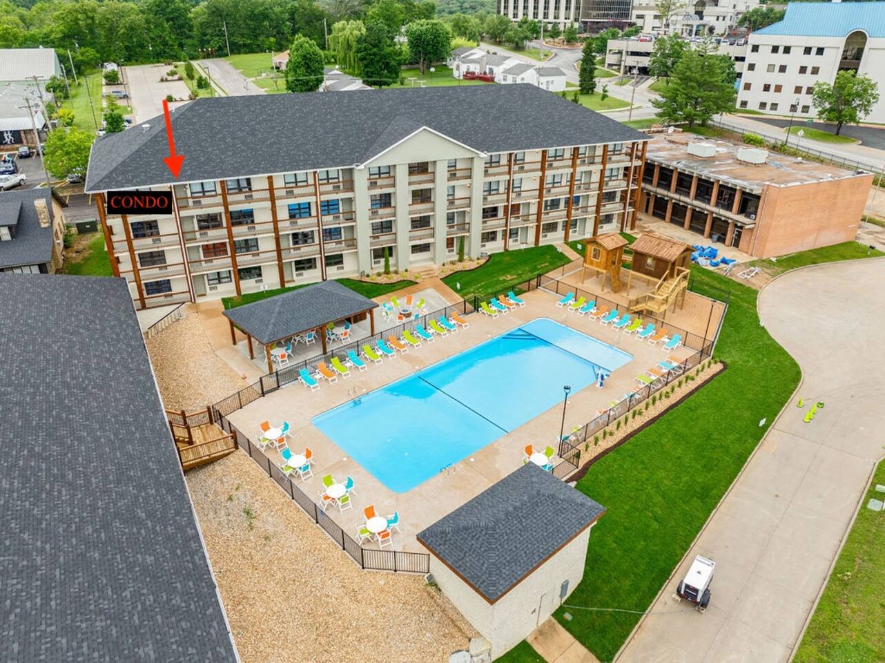 Additional surrounding units about 300 ft from building are currently under construction, with workers in the area between 8am and 5pm. Proximity to near by attractions: 2.1 miles or 6 mins drive to Shopping Center (with Walmart Super Center, Target, Dollar General, Arby’s, KFC etc) 0.5 miles or 2 mins drive to Branson Landing. 4.1 miles or 9 mins drive to Branson Theater District. 4.0 miles or 10 mins drive to Tanger Outlet Mall. 10.3 miles or 19 mins drive to Silver Dollar City. 12.6 miles or 21 mins drive to Indian Point Marina 27.1miles or 24 mins drive to Dogwood Canyon Nature Park
