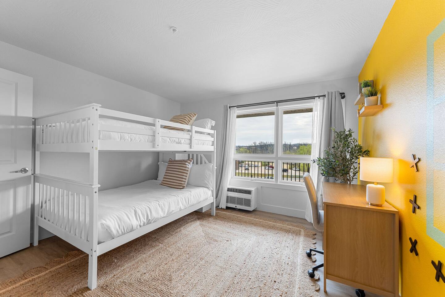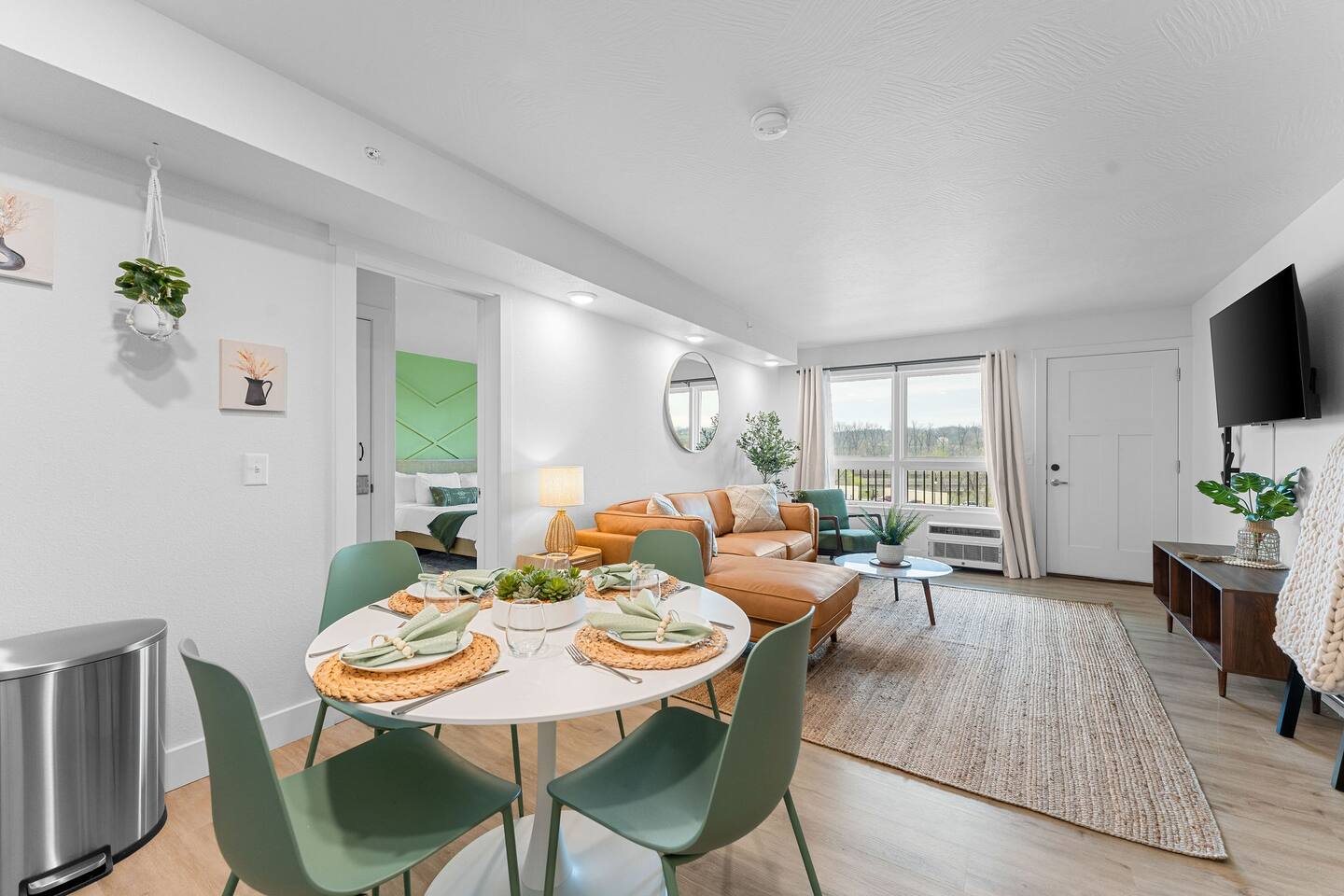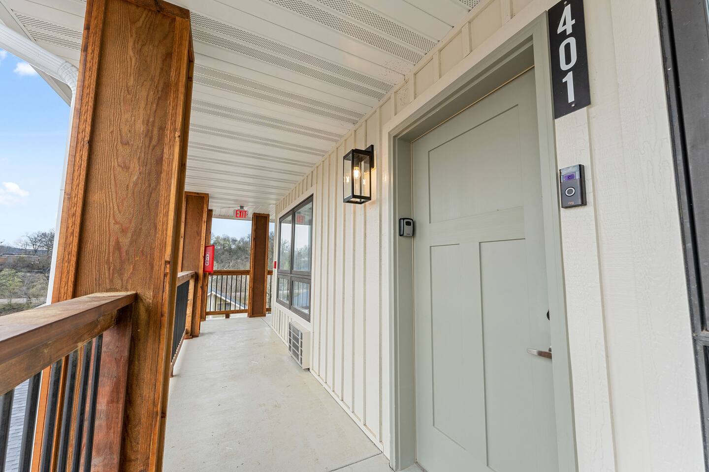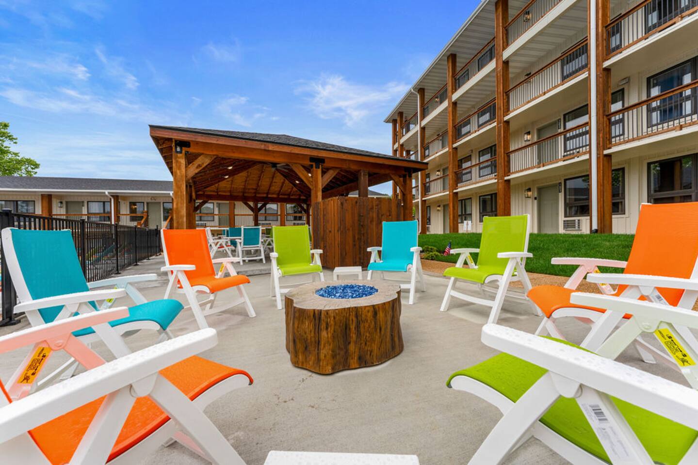 Happy Hideout, is a beautiful two bedroom, two bathroom (shower/tub combo), very tastefully decorated and spacious condo with brand new furniture and appliances, including one king size bed and two full size bunk beds in the guest bedroom to sleep six people total. The condo provides complimentary bottled water, coffee (ground and Keurig), tea, sugar, and creamer as well as board games for you and family to enjoy - including a life-size wall Tic-Tac-Toe game! You will be hard pressed to find a better deal in the lake area. The resort is conveniently located on Roark Creek with a community boat launch and access to Lake Taneycomo. The condo is less than a mile from the historic downtown and Branson Landing, with the strip close by, and Silver Dollar City only 14 miles away. Your room has a direct view to the resort’s amenities, which include an outdoor pool, gazebo, playground, and fire pit (scheduled to be completed May 31st). An additional $30 provides you and your family access to the indoor pool and gymnasium (readily available). Access via elevator or stairs. Includes digital self-check-in. Free, non-reserved parking is available for up to two vehicles. Additional units and the pool are currently under construction, with workers in the area between 8am and 5pm. The on-property coin-operated laundry and outdoor pool is expected to be completed May 31st.