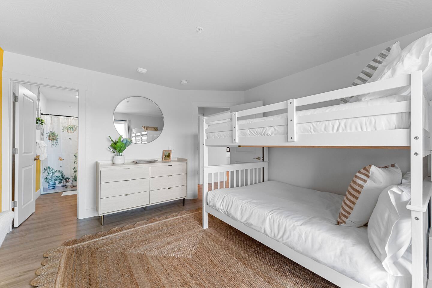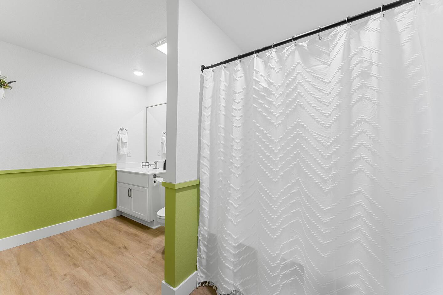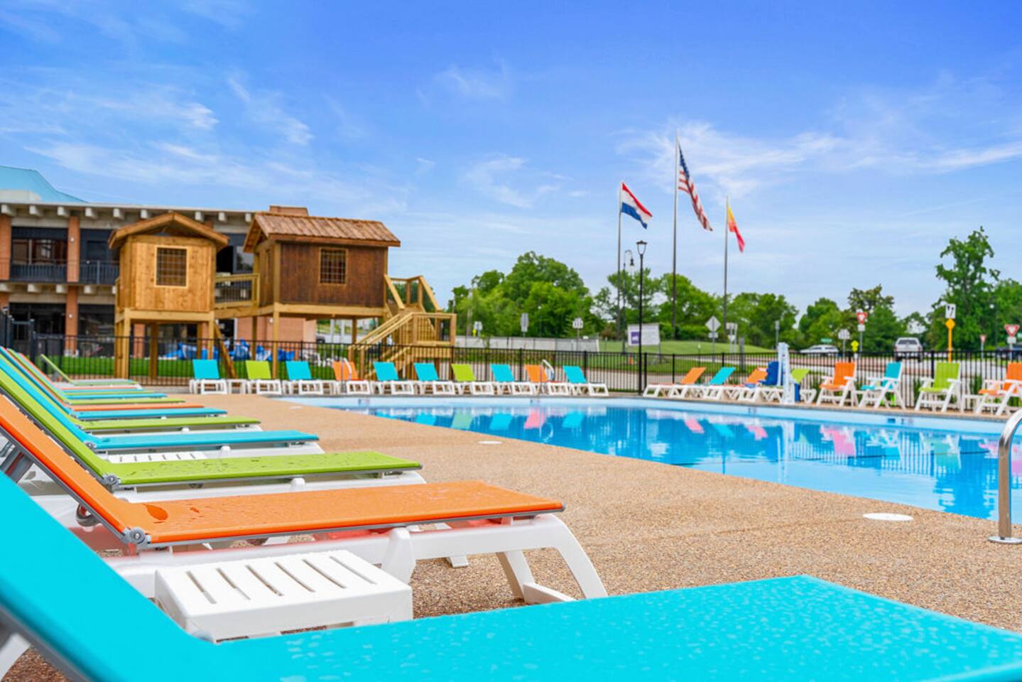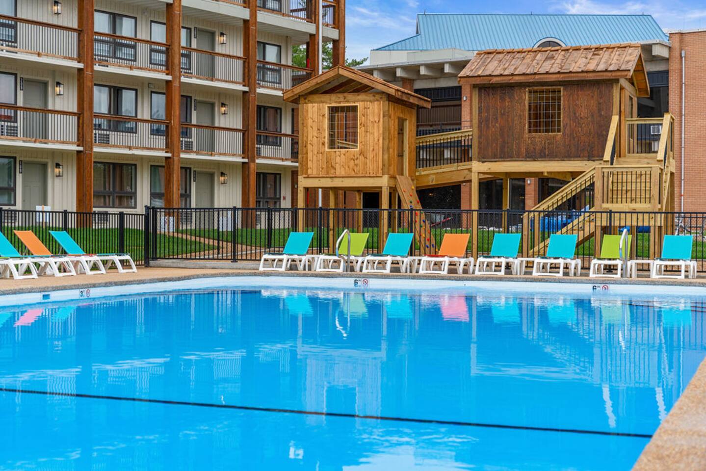 Happy Hideout, is a beautiful two bedroom, two bathroom (shower/tub combo), very tastefully decorated and spacious condo with brand new furniture and appliances, including one king size bed and two full size bunk beds in the guest bedroom to sleep six people total. The condo provides complimentary bottled water, coffee (ground and Keurig), tea, sugar, and creamer as well as board games for you and family to enjoy - including a life-size wall Tic-Tac-Toe game! You will be hard pressed to find a better deal in the lake area. The resort is conveniently located on Roark Creek with a community boat launch and access to Lake Taneycomo. The condo is less than a mile from the historic downtown and Branson Landing, with the strip close by, and Silver Dollar City only 14 miles away. Your room has a direct view to the resort’s amenities, which include an outdoor pool, gazebo, playground, and fire pit (scheduled to be completed May 31st). An additional $30 provides you and your family access to the indoor pool and gymnasium (readily available). Access via elevator or stairs. Includes digital self-check-in. Free, non-reserved parking is available for up to two vehicles. Additional units and the pool are currently under construction, with workers in the area between 8am and 5pm. The on-property coin-operated laundry and outdoor pool is expected to be completed May 31st.