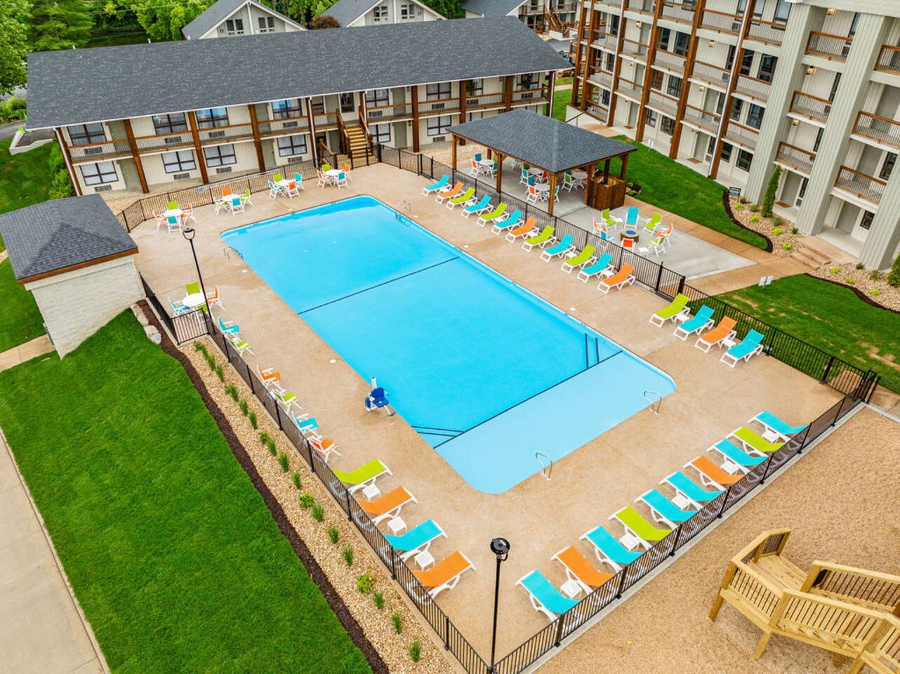 Welcome to your Happy Hideout, your newly-found rest and relaxation retreat to historic Branson, MO in the heart of the Ozarks! This very comfortable 2 bedroom, 2 bathroom condo sports brand new furniture and appliances, sleeps 6 people, & includes premium amenities including indoor & outdoor pools, gym, gazebo, playground, and fire pit. The resort is located less than a mile from historic downtown & Branson Landing, with the strip close by, & Silver Dollar City only 14 miles away.