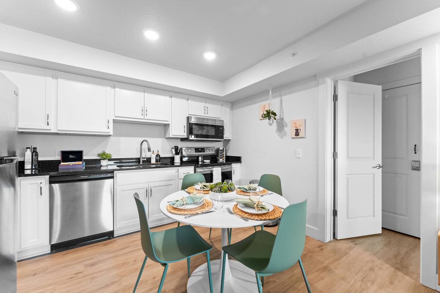 Access via elevator or stairs. Includes digital self-check-in. Free, non-reserved parking is available for up to two vehicles.